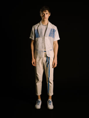 Throughout the process, I became more observant of the rave and techno scene, developing new textile techniques and silhouettes with my team. We strive to balance tradition and innovation in our work. We focused on relaxed silhouettes and lace elements, creating a new technique called "web calado" for our modern barong. Additionally, we collaborated with Jer.dee, an artist and DJ deeply immersed in the rave and techno scene. He illustrated different cities in the Philippines that host rave and techno parties, such as La Union, Poblacion Makati, and Escolta.